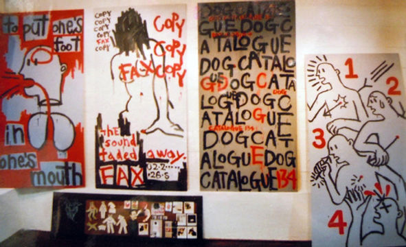 英語や数字にデザイン性を持たせた作品を多く展示。大胆な構成と圧倒的な作品数で会場全体を埋め尽くした。